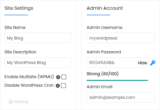 Note: Copy the admin username and password to Notepad. You will need those to access the admin area of your WordPress blog later.