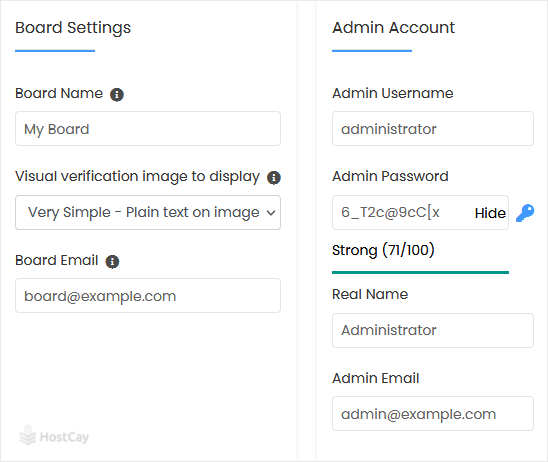 7. Under the Board Settings field, enter the following information: