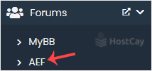 4. On the left side, locate the Forums category. Click on it and then on the AEF link that appears.