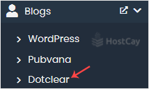 4. On the left side, locate the Blogs category. Click on it and then on the Dotclear link that appears.