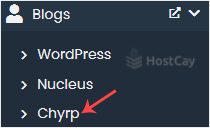4. On the left side, locate the Blogs category. Click on it and then on the Chyrp link that appears.