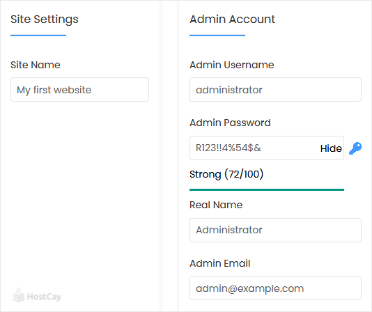 8. Under the Admin Account field, enter the following information: