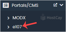 4. On the left side, locate the Portal/CMS category. Click on it and then on the e107 link that appears.