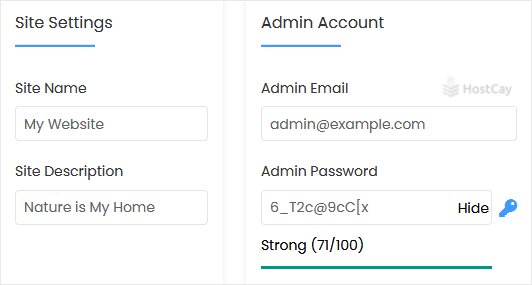 Note: Copy the admin username and password to Notepad. You will need those to access the admin area of your Quick.CMS website later.