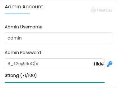 7. Under the Admin Account field, enter the following information: