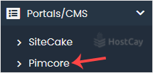 4. On the left side, locate the Portal/CMS category. Click on it and then on the Pimcore link that appears.