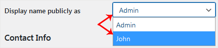 4. From the Display name publicly as, choose your newly added nickname from the drop-down menu.