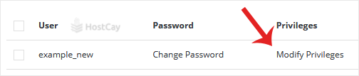 4. Under the Users list, you can find your database users. Click on Modify Privileges.