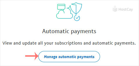 3. Go to the Payments menu and click on Manage automatic payments.