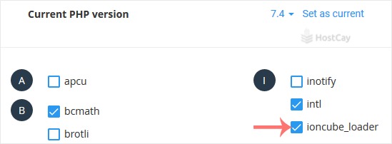 4. Checkmark the ioncube_loader. Once enabled, it will display a success message.