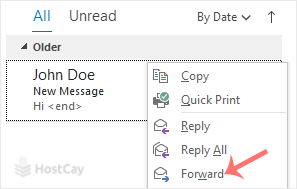 2. Go to Inbox, right-click on the message you want to forward and click on Forward.